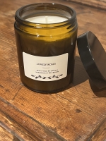 Cire mélange d'huile de colza et d'huile de coco. Mèche en coton. Huile parfumée aux roses (contient de l'amyl cinnamal, de l'eugénol, de l'alpha-hexylcinnamaldéhyde, du bêta-1-(2,6,6-triméthyl-1-cyclohexène-1-yl)-2-butène-1-one (bêta-damascone), du trans-alpha-1-(2,6,6-triméthyl-2-cyclohexène-1-yl) -2-butène-1-one (trans-alpha-damascone). Peut provoquer des réactions allergiques.)